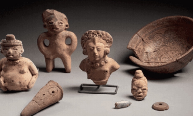 El Ministerio logró recuperar 29 piezas prehispánicas de origen maya. Entre ellas sobresale un cántaro con dos cabezas de jaguar que sirven como asas: una pintada de rojo, símbolo del día, y otra de negro, que representa la noche, explicó a la prensa Eduardo Hernández, jefe del Departamento de Prevención y Control de Tráfico Ilícito de Bienes Culturales.